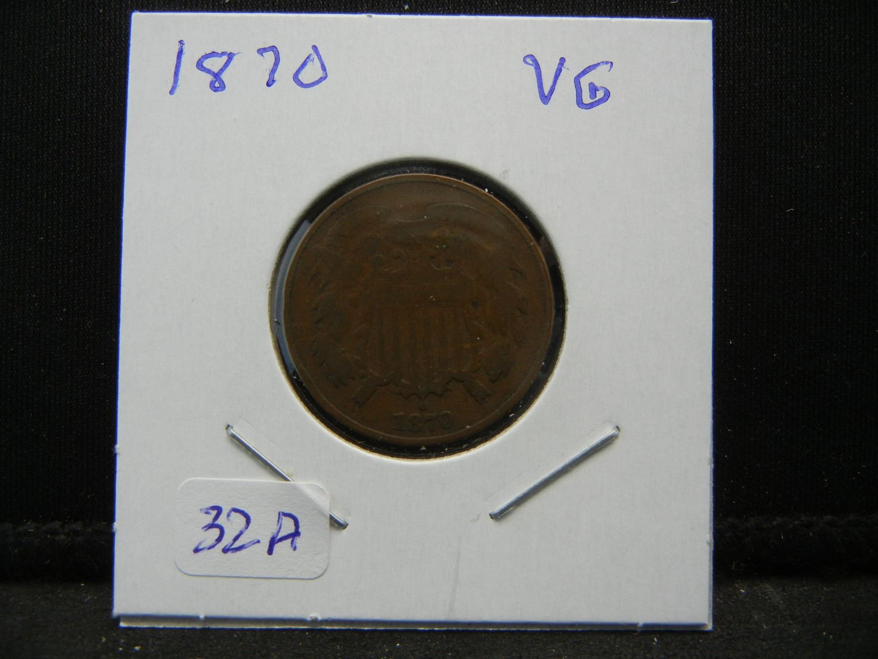 1870 Two Cent Piece. VG 10. Hard date to find.