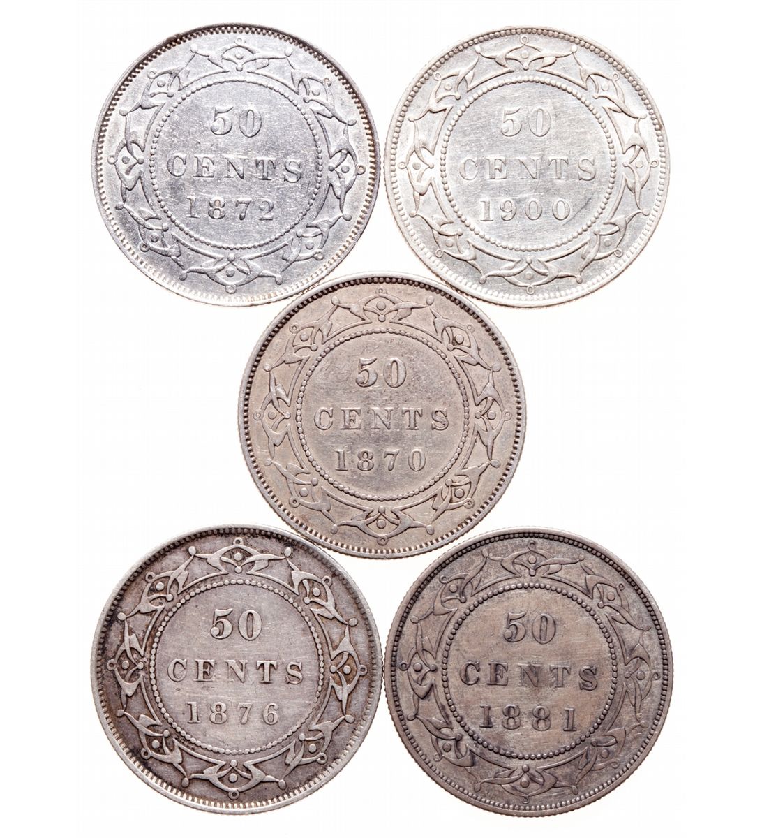 1870. Very Fine-20; 1872-H. Very Fine-30; 1876-H. Very Fine-20; 1881. Very Fine-20; 1900. Extra Fine-40. Lot of five (5) coins.