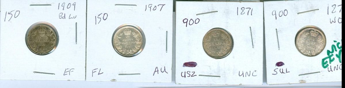 8. The estimates listed are taken from the Canadian Coin News, Charlton catalogues, Canadian Dealers News letter and retail prices, e-bay sales, Cornwell report and/or the actual market selling/ asking prices. Key dates and Highest grade material will generally command a premium and should sell close to and/or above the estimates. Our estimates are fair and very reasonable, please bid accordingly. No lot should sell less than 50% of the lowest estimates. With a bid of 80% of the lowest estimate, you have a fair chance of succeeding, with a bid of 100% of the highest estimate, you will be likely to succeed.