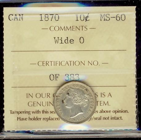 1870 Wide O 10¢ ICCS MS60, brilliant with a hint of toning.