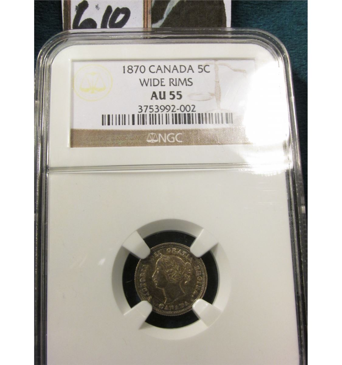 1870{Wide Rims} Silver 5C Canada NGC 55 #3753992-002