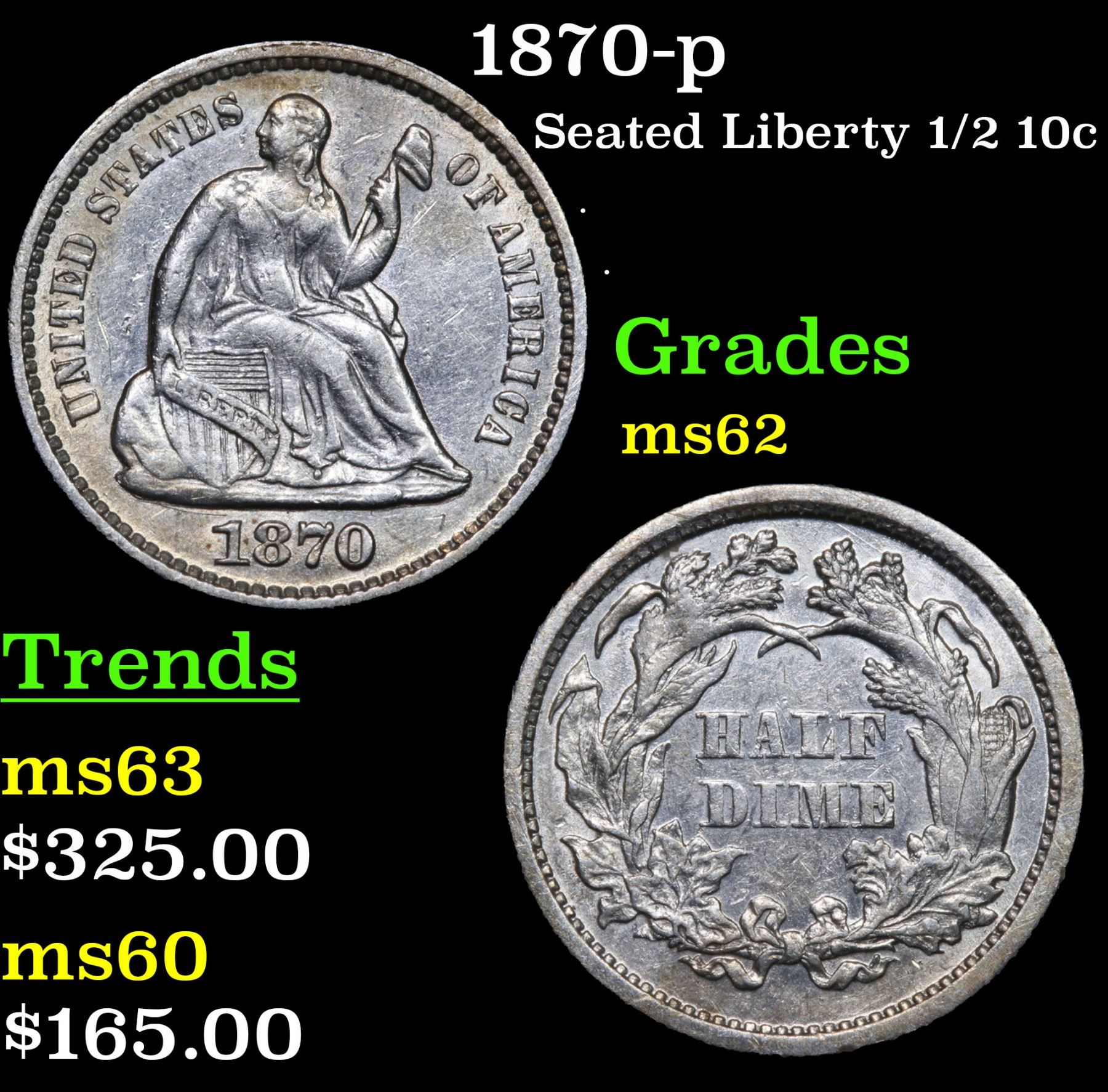 1870-p . . Seated Liberty Half Dime 1/2 10c Grades Select Unc.