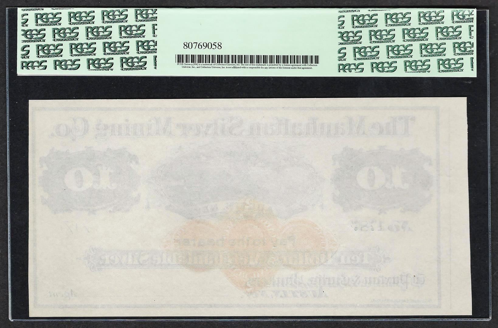 1870's $10 Manhattan Silver Mining Co. Obsolete Note PCGS Very Choice New 64PPQ