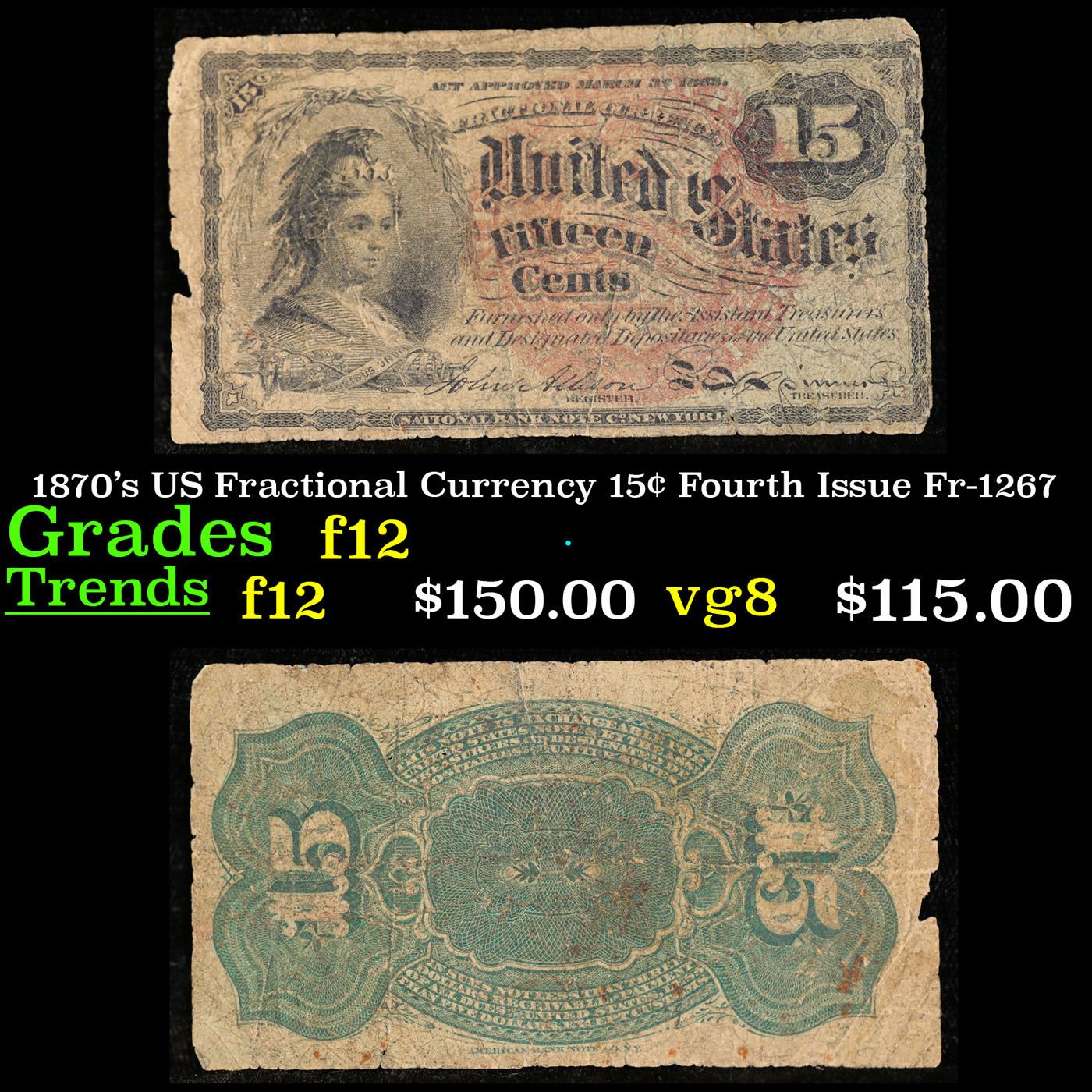 1870's US Fractional Currency 15¢ Fourth Issue Fr-1267 Grades f, fine