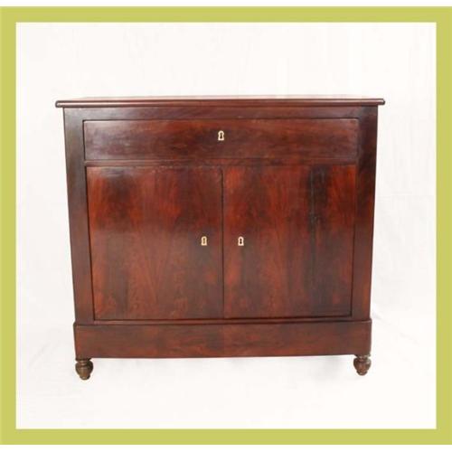 French Mahogany Louis-Philippe Sideboard. A number of light gouges on top and wood separation on doors and sides. Does not detract from beauty of piece, as wood is not broken. This is a very popular item in our physical shop. Key is included and locks are in working condition. Please refer to photos or contact us for further information. At EuroLux, our customer's happiness is our top priority. For this reason, we go to great lengths to fully, honestly and accurately describe our pieces. As we hand-select all of our pieces personally, we only buy high-quality items. However, please keep in mind that there is no such thing as a new antique or vintage item, and normal wear associated with these items is to be expected.