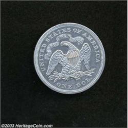 <table><tr><td><TABLE cellSpacing=0 cellPadding=0 width="100%" bgColor=#000000 border=0><TBODY> <TR><TD width="100%"><TABLE cellSpacing=1 cellPadding=3 width="100%" border=0><TBODY><TR><TD width="100%" bgColor=#79735c><FONT face=arial color=#ffffff size=3><B>Description</B> </FONT></TD></TR><TR><TD width="100%" bgColor=#ffffff><FONT face=arial size=2><B>1871 $1 Dollar, Judd-1150, Pollock-1292, R.7, PR60 Reverse Grafitti Uncertified.</B></I> The Longacre design is used on the obverse that features Liberty seated with conjoined flags behind, left hand resting on a globe, and right hand holding a Liberty pole with Phrygian cap on top. The reverse is of the regular die. Struck in aluminum with a plain edge. Longacre died in 1869, and the obverse die was assumedly prepared by his successor, William Barber. The number 132 is pinscratched in small figures above the denomination, and the lower reverse is also lightly hairlined. The remainder of this specimen is well preserved, and the strike is seemingly unimprovable.<BR><I>From The New Millennium Collection.</B></I> </FONT></TD></TR></TBODY></TABLE></TD></TR></TBODY></TABLE><BR><A name=PricesRealized></A><TABLE cellSpacing=0 cellPadding=0 width="100%" bgColor=#000000 border=0><TBODY><TR><TD width="100%"><TABLE cellSpacing=1 cellPadding=3 width="100%" border=0><TBODY><TR><TD width="100%" bgColor=#79735c><A name=PR><FONT face=arial color=#ffffff size=3><B>Previous Prices from Heritage Auctions</B> </FONT></A></TD></TR><TR><TD bgColor=#f6f6ed>No Prior Data Recorded </TD></TR><TR><TD bgColor=#ffffff><FONT face=arial size=1 ?>PLEASE NOTE: All prices realized reflect the final hammer price PLUS the buyer's premium in auctions that charge a buyer's premium. Each item has a notation at the top of the listing indicating whether that lot included a buyer's premium. Example: A item that sells with a final hammer price of $100 and a 20% buyer's premium will display with a price realized of $120. All information listed is intended to be as accurate as possible, but errors are possible. Please use this guide carefully and inform us of any inaccuracies. </FONT></TD></TR></TBODY></TABLE></TD></TR></TBODY></TABLE><BR><TABLE cellSpacing=0 cellPadding=0 width="100%" bgColor=#000000 border=0><TBODY><TR><TD width="100%"><TABLE cellSpacing=1 cellPadding=3 width="100%" border=0><TBODY><TR><TD width="100%" bgColor=#79735c colSpan=6><FONT face=arial color=#ffffff size=3><B>Price Guide*</B> </FONT></TD></TR><TR bgColor=#f6f6ed><TD align=middle><B>Grade</B> </TD><TD align=middle><B>Coin World<BR>(Trends)</B> </TD><TD align=middle><B>Numismedia<BR>Retail</B> </TD><TD align=middle><B>Numismedia<BR>Wholesale</B> </TD><TD align=middle><B>Coin<BR>Universe</B> </TD><TD align=middle><B>Heritage<BR>Value Index</B> </TD></TR><TR bgColor=#ffffff><TD align=middle>58</TD><TD align=right>---</TD><TD align=right>---</TD><TD align=right>---</TD><TD align=right>---</TD><TD align=right>---</TD></TR><TR style="FONT-WEIGHT: bold" bgColor=#cccfdd><TD align=middle>60</TD><TD align=right>---</TD><TD align=right>---</TD><TD align=right>---</TD><TD align=right>---</TD><TD align=right>---</TD></TR><TR bgColor=#ffffff><TD align=middle>61</TD><TD align=right>---</TD><TD align=right>---</TD><TD align=right>---</TD><TD align=right>---</TD><TD align=right>---</TD></TR><TR bgColor=#ffffff><TD colSpan=6><FONT size=1>*All information listed is intended to be as accurate as possible, but errors are possible. No item may be returned or refused based on this information which is provided as a service to our customers. You should contact each pricing source directly to determine the accuracy of this information. </FONT></TD></TR></TBODY></TABLE></TD></TR></TBODY></TABLE><BR><TABLE cellSpacing=0 cellPadding=0 width="100%" bgColor=#000000 border=0><TBODY><TR><TD width="100%"><TABLE cellSpacing=1 cellPadding=3 width="100%" border=0><TBODY><TR><TD width="100%" bgColor=#79735c><FONT face=arial color=#ffffff size=3><B>Population Guide</B> </FONT></TD></TR><TR bgColor=#ffffff><TD align=middle><!-- Begin Output of Population Grid--><TABLE cellSpacing=0 cellPadding=0 width="100%" border=0><TBODY><TR><TD vAlign=center><TABLE cellSpacing=0 width="100%" border=1 cellsadding="3"><TBODY><TR><TD vAlign=center><TABLE cellSpacing=0 cellPadding=3 width="100%" border=1><TBODY><TR><TD vAlign=center align=middle bgColor=#f0f1e8 colSpan=2 <CENTER><FONT face=Arial size=2><B>PCGS Pop </B></FONT><CENTER></CENTER></TD><TD vAlign=center align=middle bgColor=#f0f1e8 colSpan=2><CENTER><FONT face=Arial size=2><B>NGC Pop</B></CENTER></FONT></TD></TR><TR><TD vAlign=center><FONT face=Arial size=2>(60)</FONT> </TD><TD vAlign=center align=right><FONT face=Arial size=2>0</FONT> </TD><TD vAlign=center><FONT face=Arial size=2>(60)</FONT> </TD><TD vAlign=center align=right><FONT face=Arial size=2>0</FONT> </TD></TR><TR><TD vAlign=center><FONT face=Arial size=2>(>60)</FONT> </TD><TD vAlign=center align=right><FONT face=Arial size=2>1</FONT> </TD><TD vAlign=center><FONT face=Arial size=2>(>60)</FONT> </TD><TD vAlign=center align=right><FONT face=Arial size=2>4</FONT> </TD></TR></TBODY></TABLE></TD></TR></TBODY></TABLE></TD></TR></TBODY></TABLE><!-- End Output of Population Grid--></TD></TR></TBODY></TABLE></TD></TR></TBODY></TABLE><BR><TABLE cellSpacing=0 cellPadding=0 width="100%" bgColor=#000000 border=0><TBODY><TR> Important notice: Heritage usually auctions material at the rate of 200-250 lots per hour. On some occasions eBay Live bid software or the Internet may not be able to keep up with the pace of the auction. We recommend placing a realistic absentee bid now as insurance to avoid disappointment. Occasionally the auctioneer may eliminate or reject an eBay Live bid, and the auctioneer may also reopen a lot after the close of the eBay live bidding (usually because we missed an audience bid), and may reject your bid even if it shows you as the winning bidder. By bidding via eBay Live, you agree that Heritage may award the lot to another bidd