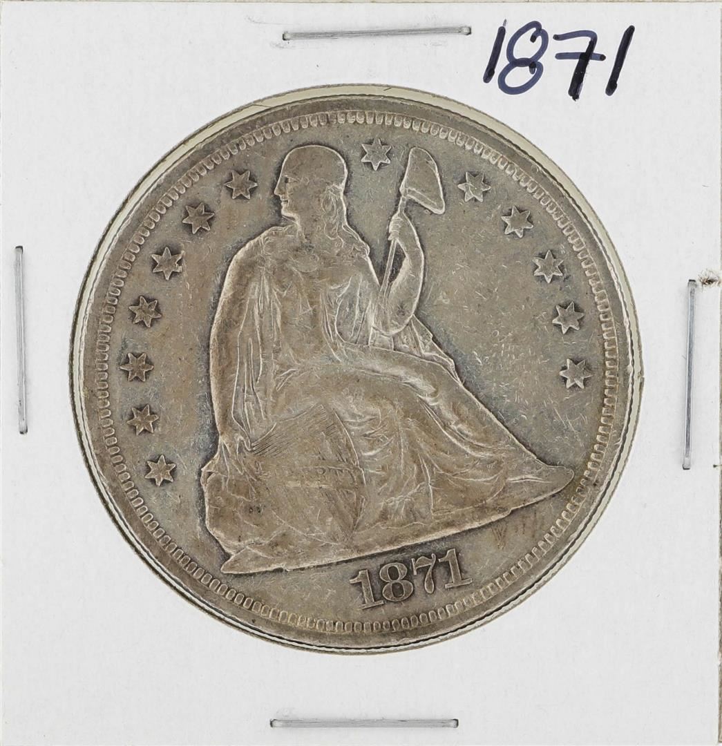 One 1871 $1 Liberty Seated Silver Dollar Coin.