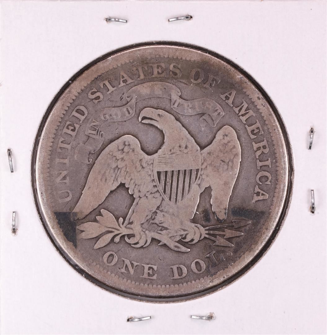 One 1871 $1 Seated Liberty Silver Dollar Coin.