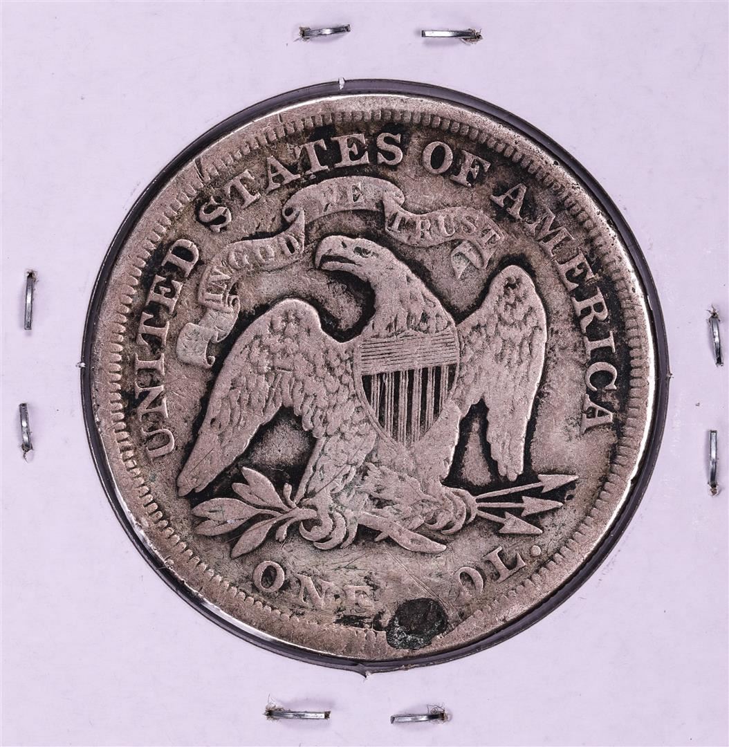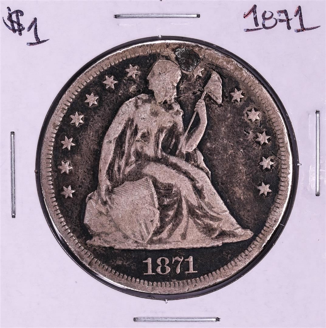 One 1871 $1 Seated Liberty Silver Dollar Coin.