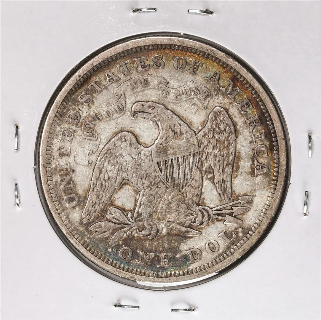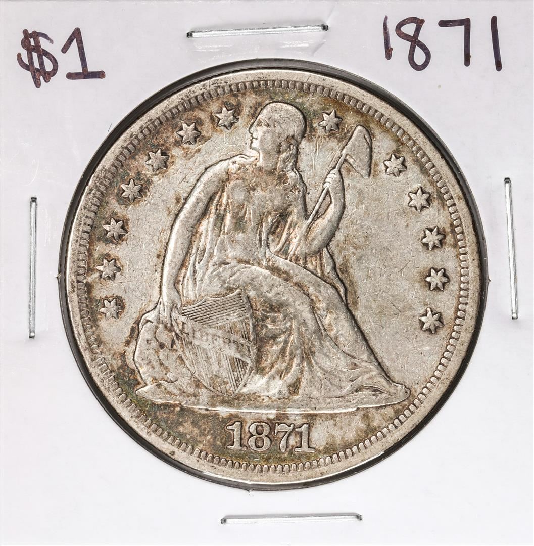One 1871 $1 Seated Liberty Silver Dollar Coin.