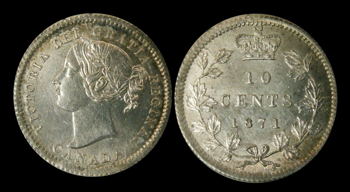 1871 10¢ ICCS MS-63, Touch of gold otherwise brilliant. Excellent strikes and clean fields. Only 3 finer