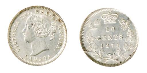 1871 10¢ ICCS MS60, brilliant with lots of lustre.