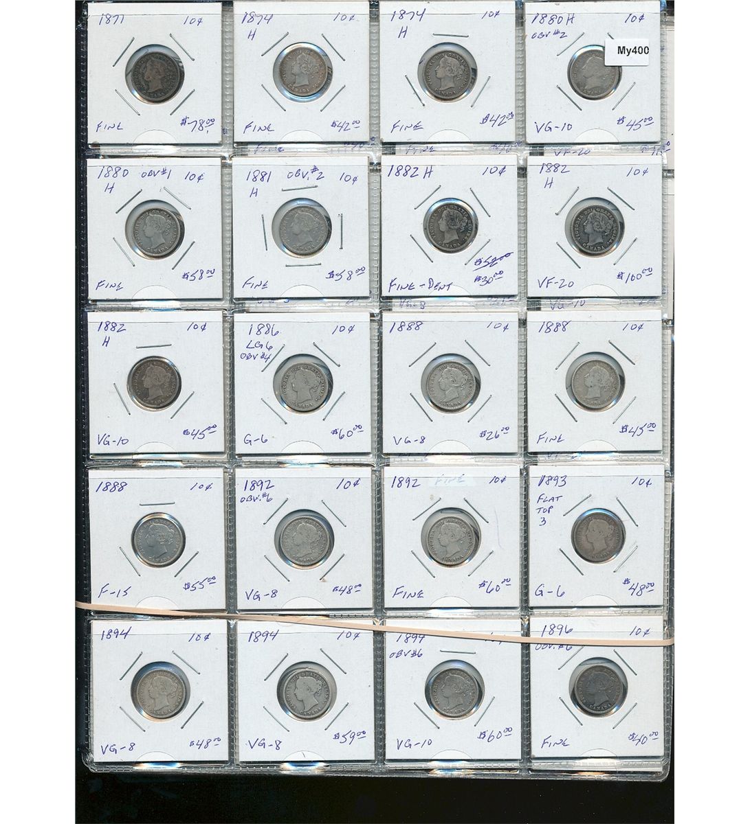 1871 10¢ to 2013 Incomplete Date Set; includes 1871-1901(38), 1902-1910(30), 1911-1936(34) with 1913 Brd Lv, 1934 Bar, 1937-2013(116). A nice lot of 215+pcs mainly VG to EF, with not real key issues. Does include a few nice VF to AU pre 1937 pcs. A few coins with issues.