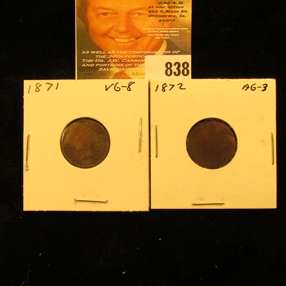 1871 & 1872 U.S. Indian Head Cents.