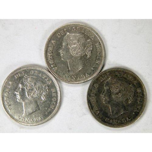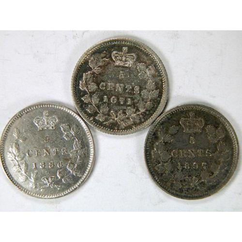 1871, 1886 Large 6 and 1897. Three pieces, all EF and pale to lightly toned