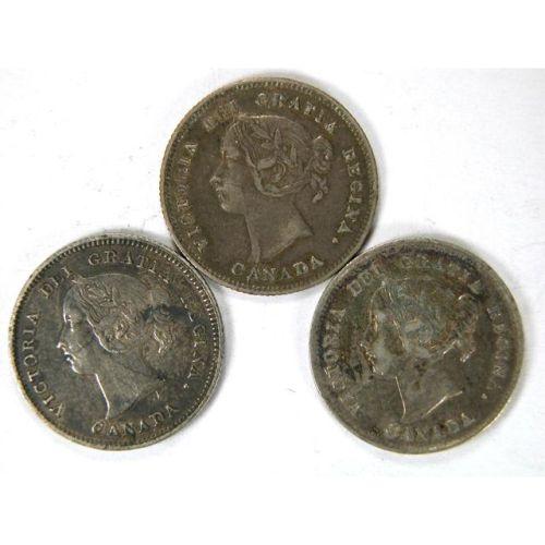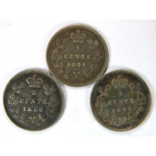 1871, 1886 Large 6 and 1899. Three pieces, all VF-EF and pale to lightly toned