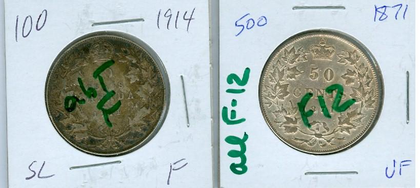 1871 & 1914 50¢. Lot of 2 coins. Abt F to Fine.