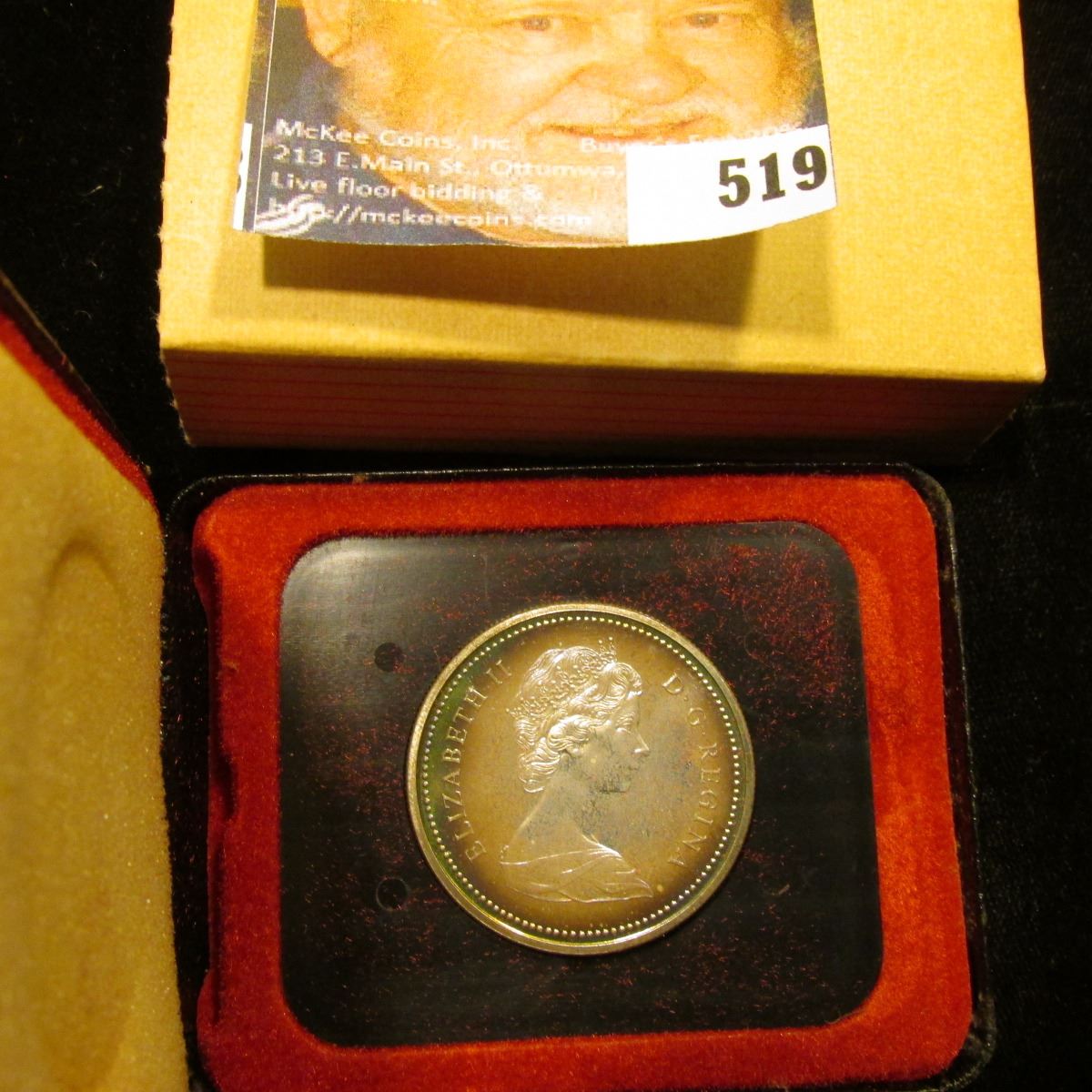 1871-1971 British Columbia encased .500 Fine Silver Dollar in original box of issue. Prooflike.