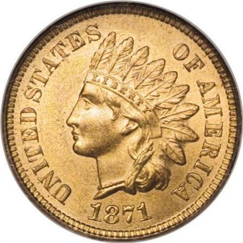 <B>1871 1C MS64 Red NGC.</B></I> The 1871 has the lowest mintage of the 1864-1873 decade, at less than 4 million coins, and high-grade survivors are noticeably scarce in the marketplace. The present near-Gem shows a sharp strike even on the topmost headdress feathers, with local weakness only on the four ribbon diamonds. The reverse details are well brought up also, and mentionable distractions are absent. A Gem Red coin, if available, would cost much, much more. Census: 10 in 64 Red, 4 finer (12/07).<BR><BR><B>Coin Engraver:</B> James B. Longacre<BR><BR><b>Shipping:</b> Coins & Currency (<a target="_blank" href="http://www.heritageauctions.com/common/shipping.php">view shipping information</a>)