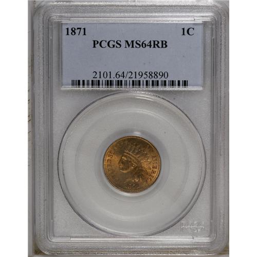 <B>1871<1C> MS64 Red and Brown PCGS.</B></I> Orange and tan are intermixed on this near-Gem. A solidly struck coin that has minimal carbon and just a few too many stray marks for a higher grade.