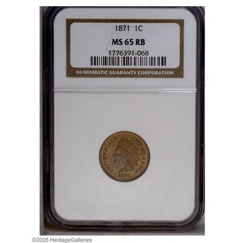 <B>1871<1C> MS65 Red and Brown NGC.</B></I> Beautiful red-gold color graces this well struck and lustrous better date Gem. Moderate carbon is seen near the E in ONE. Less than 4 million pieces were struck, and most survivors are well circulated.