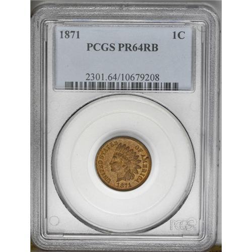 <B>1871<1C> PR64 Red and Brown PCGS.</B></I> Shallow N in ONE. The obverse of this well struck near-Gem is close to full Red, although subtle variegated lilac toning is present. The reverse has a lavender-tinged center and orange-gold borders. A small obverse spot at 2:30 requires cursory mention.<BR><I>Ex: Arthur A. Grasso Collection (Stack's, 11/50), lot 71.</B></I><BR><I>From The Redfjord Collection.</B></I>