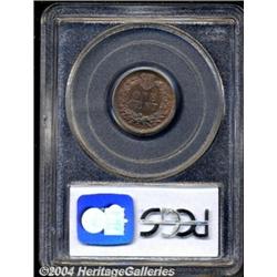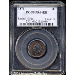 <B>1871<1C> PR64 Red and Brown PCGS.</B></I> Reddish-brown fields are accented by bluish-green coloration on the devices. The design elements are sharply defined, with the surfaces showing no significant marks. <BR><BR><B>Important notice:</B> Heritage usually auctions material at the rate of 200-250 lots per hour. On some occasions eBay Live bid software or the Internet may not be able to keep up with the pace of the auction. We recommend placing a realistic absentee bid now as insurance to avoid disappointment. Occasionally the auctioneer may eliminate or reject an eBay Live bid, and the auctioneer may also reopen a lot after the close of the eBay live bidding (usually because we missed an audience bid), and may reject your bid even if it shows you as the winning bidder. By bidding via eBay Live, you agree that Heritage may award the lot to another bidder at its sole discretion under the circumstances described above or any other reasonable circumstances. Since eBay bids are not shown to us until we open the lot on the floor, we treat those bids just like floor bids. In most cases the floor responds before the eBay bid is presented to us, due to Internet lag time, so for consistency we have made it a policy that floor bids are always considered first over tie eBay live bids. Also please note that all Heritage lots purchased through eBay Live carry a 20% Buyer's Premium. Please make sure you read the Terms and Conditions before you bid. </span></font></tr></table></td></tr></table>