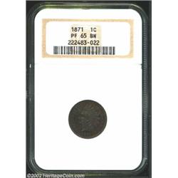 1871 1C PR65 Brown NGC. A deeply toned violet-brown specimen that requires a slight tilt to pick up.