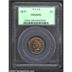 1871 1C PR65 Red PCGS. A conditionally scarce survivor from an original proof delivery of at least 9