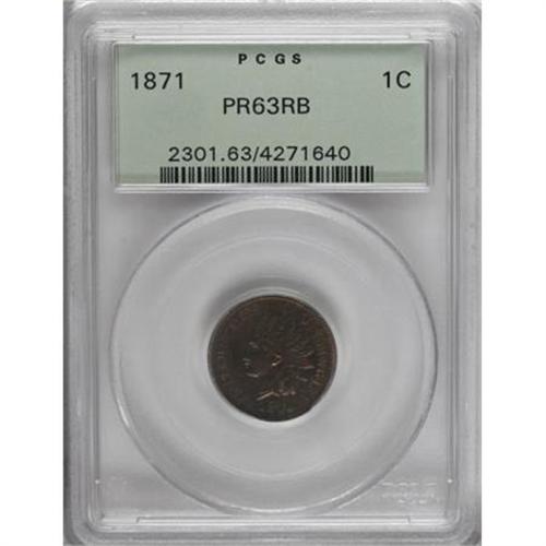 <B>1871 1C PR63 Red and Brown PCGS.</B></I> PCGS Population (35/132). NGC Census: (19/105). Mintage: 960. Numismedia Wsl. Price for NGC/PCGS coin in PR63: $355. (#2301)<BR><BR><B>Coin Engraver:</B> James B. Longacre<BR><BR><b>Shipping:</b> Coins & Currency (<a target="_blank" href="http://www.heritageauctions.com/common/shipping.php">view shipping information</a>)