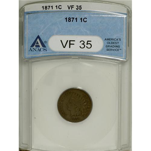 1871 1C VF35 ANACS. NGC Census: (18/240). PCGS Pop