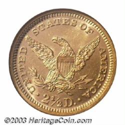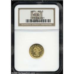 <table><tr><td><TABLE cellSpacing=0 cellPadding=0 width="100%" bgColor=#000000 border=0><TBODY> <TR><TD width="100%"><TABLE cellSpacing=1 cellPadding=3 width="100%" border=0><TBODY><TR><TD width="100%" bgColor=#79735c><FONT face=arial color=#ffffff size=3><B>Description</B> </FONT></TD></TR><TR><TD width="100%" bgColor=#ffffff><FONT face=arial size=2><B>1871 $2 1/2 MS62 NGC.</B></I> A surprisingly scarce date in the quarter eagle series with a mintage of only 5,350 pieces produced. This is certainly one of the better examples we have handled. The fields are bright and prooflike with strongly impressed devices and rich golden-orange coloration. Close examination reveals a number of small abrasions, none of which are noticeable without a magnifier. Really a nice coin and an excellent value for the grade. </FONT></TD></TR></TBODY></TABLE></TD></TR></TBODY></TABLE><BR><A name=PricesRealized></A><TABLE cellSpacing=0 cellPadding=0 width="100%" bgColor=#000000 border=0><TBODY><TR><TD width="100%"><TABLE cellSpacing=1 cellPadding=3 width="100%" border=0><TBODY><TR><TD width="100%" bgColor=#79735c><A name=PR><FONT face=arial color=#ffffff size=3><B>Previous Prices from Heritage Auctions</B> </FONT></A></TD></TR><TR><TD bgColor=#f6f6ed><TABLE cellSpacing=0 cellPadding=0 width="100%" border=1><TBODY><TR><TD align=middle width="33%"><B>Date</B></TD><TD align=middle width="33%"><B>Service</B></TD><TD align=middle width="33%"><B>Price</B></TD></TR><TR bgColor=whitesmoke><TD width="33%"><B>11/25/2002</B></TD><TD width="33%">NGC</TD><TD width="33%">$1,958.45</TD></TR><TR bgColor=whitesmoke><TD width="33%"><B>01/01/1995</B></TD><TD width="33%">NGC</TD><TD width="33%">$2,530.00</TD></TR></TBODY></TABLE></TD></TR><TR><TD bgColor=#ffffff><FONT face=arial size=1 ?>PLEASE NOTE: All prices realized reflect the final hammer price PLUS the buyer's premium in auctions that charge a buyer's premium. Each item has a notation at the top of the listing indicating whether that lot included a buyer's premium. Example: A item that sells with a final hammer price of $100 and a 20% buyer's premium will display with a price realized of $120. All information listed is intended to be as accurate as possible, but errors are possible. Please use this guide carefully and inform us of any inaccuracies. </FONT></TD></TR></TBODY></TABLE></TD></TR></TBODY></TABLE><BR><TABLE cellSpacing=0 cellPadding=0 width="100%" bgColor=#000000 border=0><TBODY><TR><TD width="100%"><TABLE cellSpacing=1 cellPadding=3 width="100%" border=0><TBODY><TR><TD width="100%" bgColor=#79735c colSpan=6><FONT face=arial color=#ffffff size=3><B>Price Guide*</B> </FONT></TD></TR><TR bgColor=#f6f6ed><TD align=middle><B>Grade</B> </TD><TD align=middle><B>Coin World<BR>(Trends)</B> </TD><TD align=middle><B>Numismedia<BR>Retail</B> </TD><TD align=middle><B>Numismedia<BR>Wholesale</B> </TD><TD align=middle><B>Coin<BR>Universe</B> </TD><TD align=middle><B>Heritage<BR>Value Index</B> </TD></TR><TR bgColor=#ffffff><TD align=middle>61</TD><TD align=right>---</TD><TD align=right>---</TD><TD align=right>$2,050.00</TD><TD align=right>---</TD><TD align=right>$1,968.75</TD></TR><TR style="FONT-WEIGHT: bold" bgColor=#cccfdd><TD align=middle>62</TD><TD align=right>$2,700.00</TD><TD align=right>---</TD><TD align=right>$2,475.00</TD><TD align=right>$3,750.00</TD><TD align=right>$2,218.36</TD></TR><TR bgColor=#ffffff><TD align=middle>63</TD><TD align=right>$4,250.00</TD><TD align=right>---</TD><TD align=right>$3,825.00</TD><TD align=right>$4,950.00</TD><TD align=right>$3,076.67</TD></TR><TR bgColor=#ffffff><TD colSpan=6><FONT size=1>*All information listed is intended to be as accurate as possible, but errors are possible. No item may be returned or refused based on this information which is provided as a service to our customers. You should contact each pricing source directly to determine the accuracy of this information. </FONT></TD></TR></TBODY></TABLE></TD></TR></TBODY></TABLE><BR><TABLE cellSpacing=0 cellPadding=0 width="100%" bgColor=#000000 border=0><TBODY><TR><TD width="100%"><TABLE cellSpacing=1 cellPadding=3 width="100%" border=0><TBODY><TR><TD width="100%" bgColor=#79735c><FONT face=arial color=#ffffff size=3><B>Population Guide</B> </FONT></TD></TR><TR bgColor=#ffffff><TD align=middle><!-- Begin Output of Population Grid--><TABLE cellSpacing=0 cellPadding=0 width="100%" border=0><TBODY><TR><TD vAlign=center><TABLE cellSpacing=0 width="100%" border=1 cellsadding="3"><TBODY><TR><TD vAlign=center><TABLE cellSpacing=0 cellPadding=3 width="100%" border=1><TBODY><TR><TD vAlign=center align=middle bgColor=#f0f1e8 colSpan=2 <CENTER><FONT face=Arial size=2><B>PCGS Pop </B></FONT><CENTER></CENTER></TD><TD vAlign=center align=middle bgColor=#f0f1e8 colSpan=2><CENTER><FONT face=Arial size=2><B>NGC Pop</B></CENTER></FONT></TD></TR><TR><TD vAlign=center><FONT face=Arial size=2>(62)</FONT> </TD><TD vAlign=center align=right><FONT face=Arial size=2>5</FONT> </TD><TD vAlign=center><FONT face=Arial size=2>(62)</FONT> </TD><TD vAlign=center align=right><FONT face=Arial size=2>3</FONT> </TD></TR><TR><TD vAlign=center><FONT face=Arial size=2>(>62)</FONT> </TD><TD vAlign=center align=right><FONT face=Arial size=2>13</FONT> </TD><TD vAlign=center><FONT face=Arial size=2>(>62)</FONT> </TD><TD vAlign=center align=right><FONT face=Arial size=2>5</FONT> </TD></TR></TBODY></TABLE></TD></TR></TBODY></TABLE></TD></TR></TBODY></TABLE><!-- End Output of Population Grid--></TD></TR></TBODY></TABLE></TD></TR></TBODY></TABLE><BR><TABLE cellSpacing=0 cellPadding=0 width="100%" bgColor=#000000 border=0><TBODY><TR> Important notice: Heritage usually auctions material at the rate of 200-250 lots per hour. On some occasions eBay Live bid software or the Internet may not be able to keep up with the pace of the auction. We recommend placing a realistic absentee bid now as insurance to avoid disappointment. Occasionally the auctioneer may eliminate or reject an eBay Live bid, and the auctioneer may also reopen