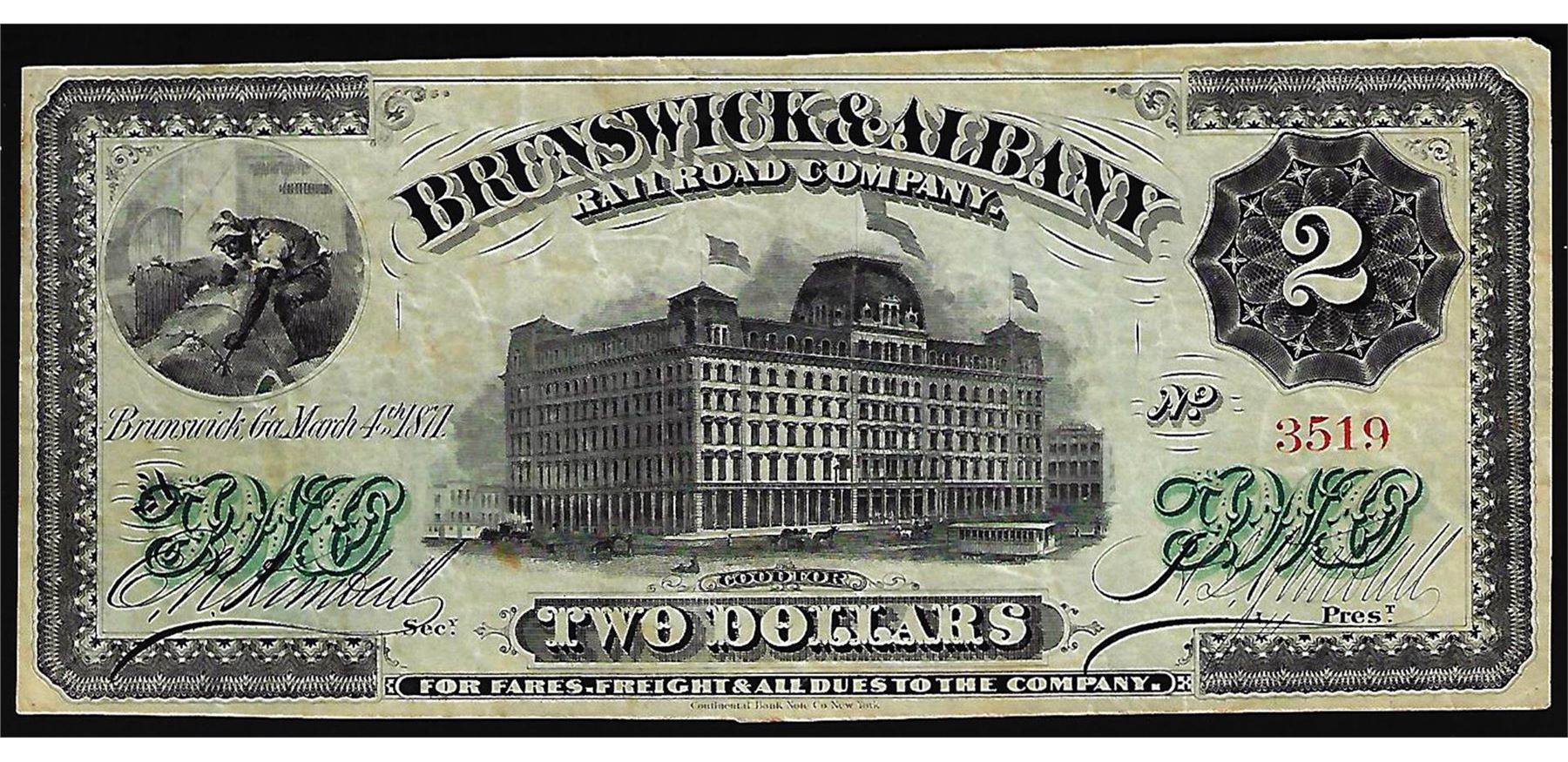 One 1871 $2 Brunswick & Albany Obsolete Note.