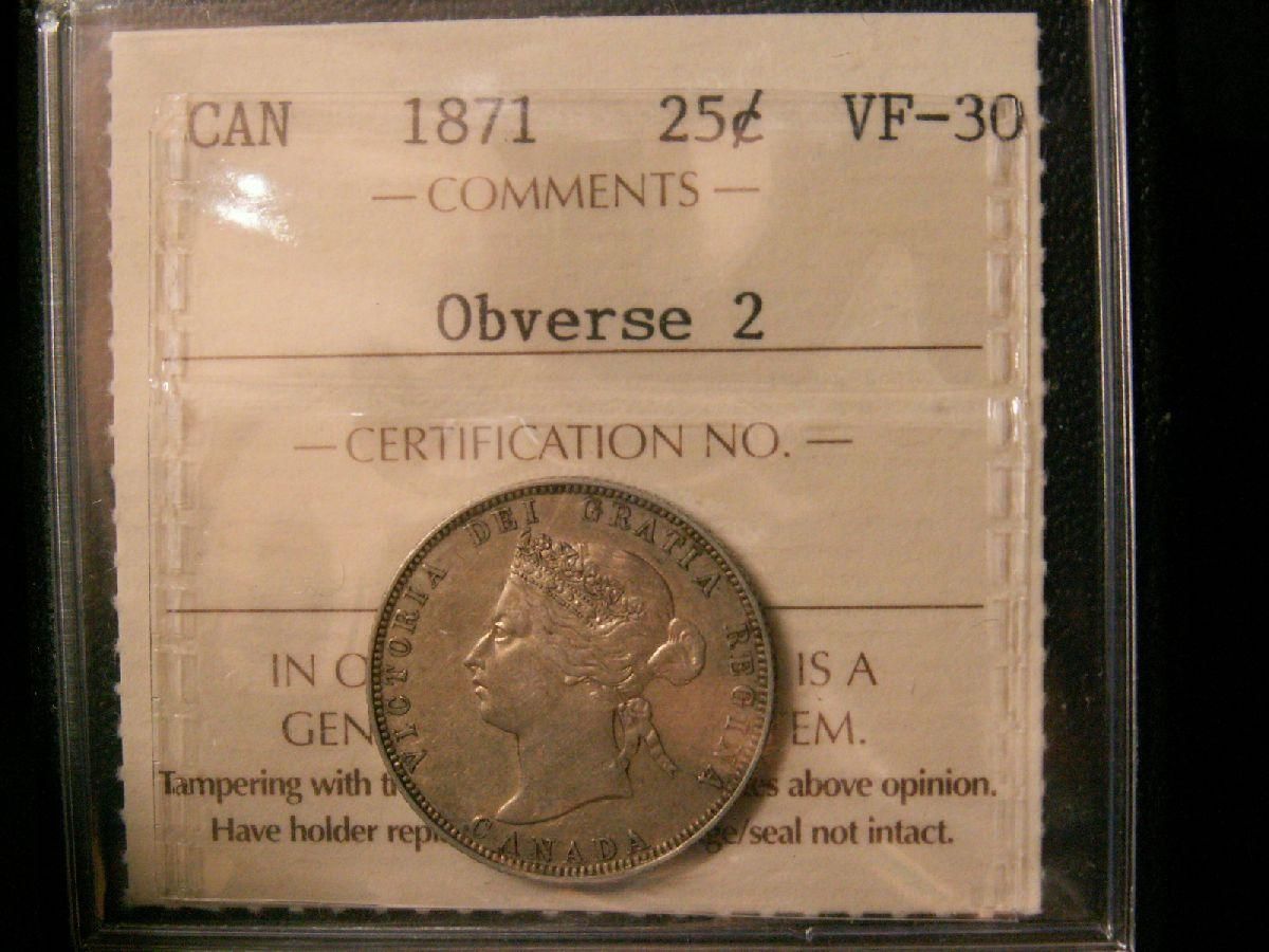 1871 25¢ ICCS Obv 2 ICCS VF30.