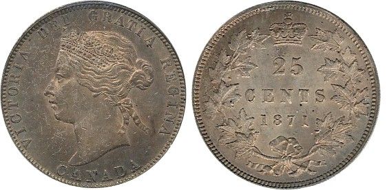 1871 25¢ Obv 2 ICCS MS65. Deep gold tones. Rare