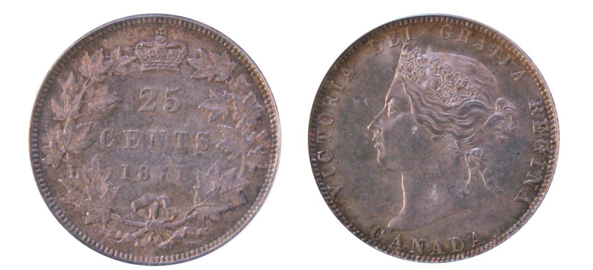 1871 25¢ PCGS MS64. Well defined with golden shades. Excellent strike with clean fields and nice surfaces.