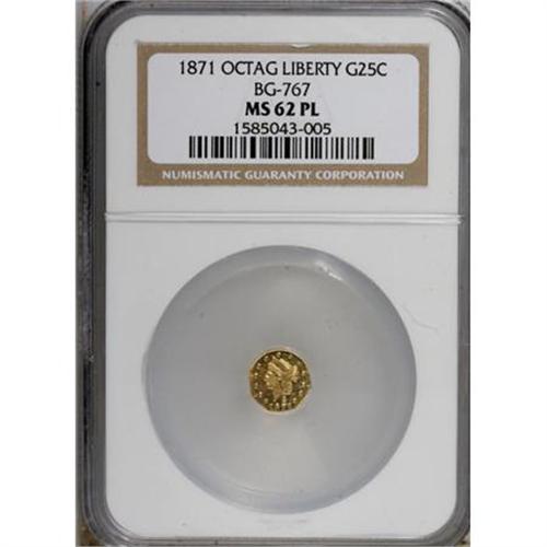 <B>1871 25C BG-767 MS62 Prooflike NGC.</B></I> NGC Census: (8/9). PCGS Population (0/0). (#710594)<BR><BR><b>Shipping:</b> Coins & Currency (<a target="_blank" href="http://www.heritageauctions.com/common/shipping.php">view shipping information</a>)