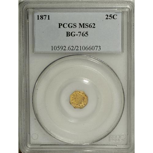 1871 25C Liberty Octagonal 25 Cents, BG-765, R.3, MS62