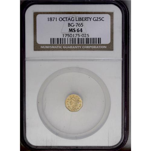 1871 25C Liberty Octagonal 25 Cents, BG-765, R.3, MS64 1871[25C] Liberty Octagonal 25 Cents, BG-765,