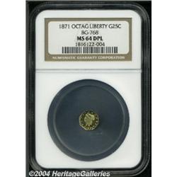 1871[25C] Liberty Octagonal 25 Cents, BG-768, R.4, MS64 DPL NGC.