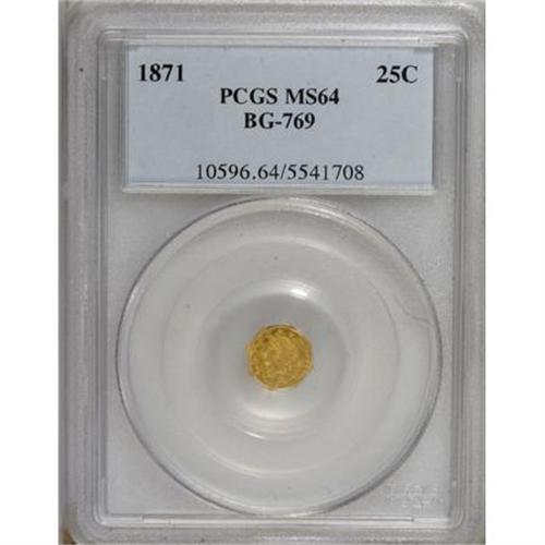 <B>1871 25C Liberty Octagonal 25 Cents, BG-769, R.5, MS64 PCGS.</B></I> PCGS Population (5/0). NGC Census: (0/0). (#10596)<BR><BR><b>Shipping:</b> Coins & Currency (<a target="_blank" href="http://www.heritageauctions.com/common/shipping.php">view shipping information</a>)