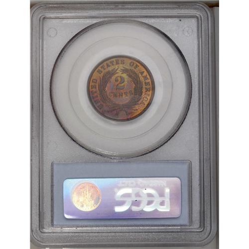 <B>1871<2C> PR64 Red and Brown PCGS.</B></I> A Red and Brown near-Gem with violet accents on the reverse. Beautifully detailed with fairly clean surfaces for the grade, though a few small hairlines appear in the fields.