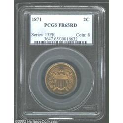 1871 2C PR65 Red PCGS. The lustrous surfaces are aglow in cherry-red colors. There are no grade-limi