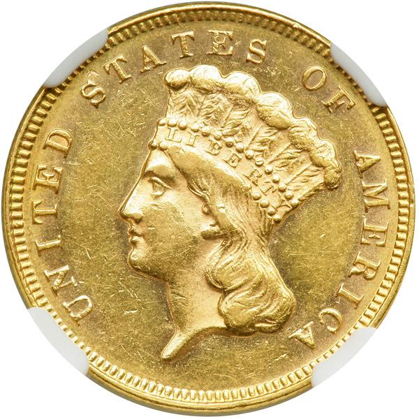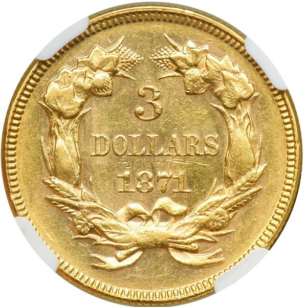 1871. NGC graded AU-58. Well struck with flashy flattering prooflike surfaces on both sides. Has the look of a full Mint State coin, come to think of it. Rare low mintage date as well, with a mere 1,300 struck. Pop 83; 38 finer (PCGS # 7993) .