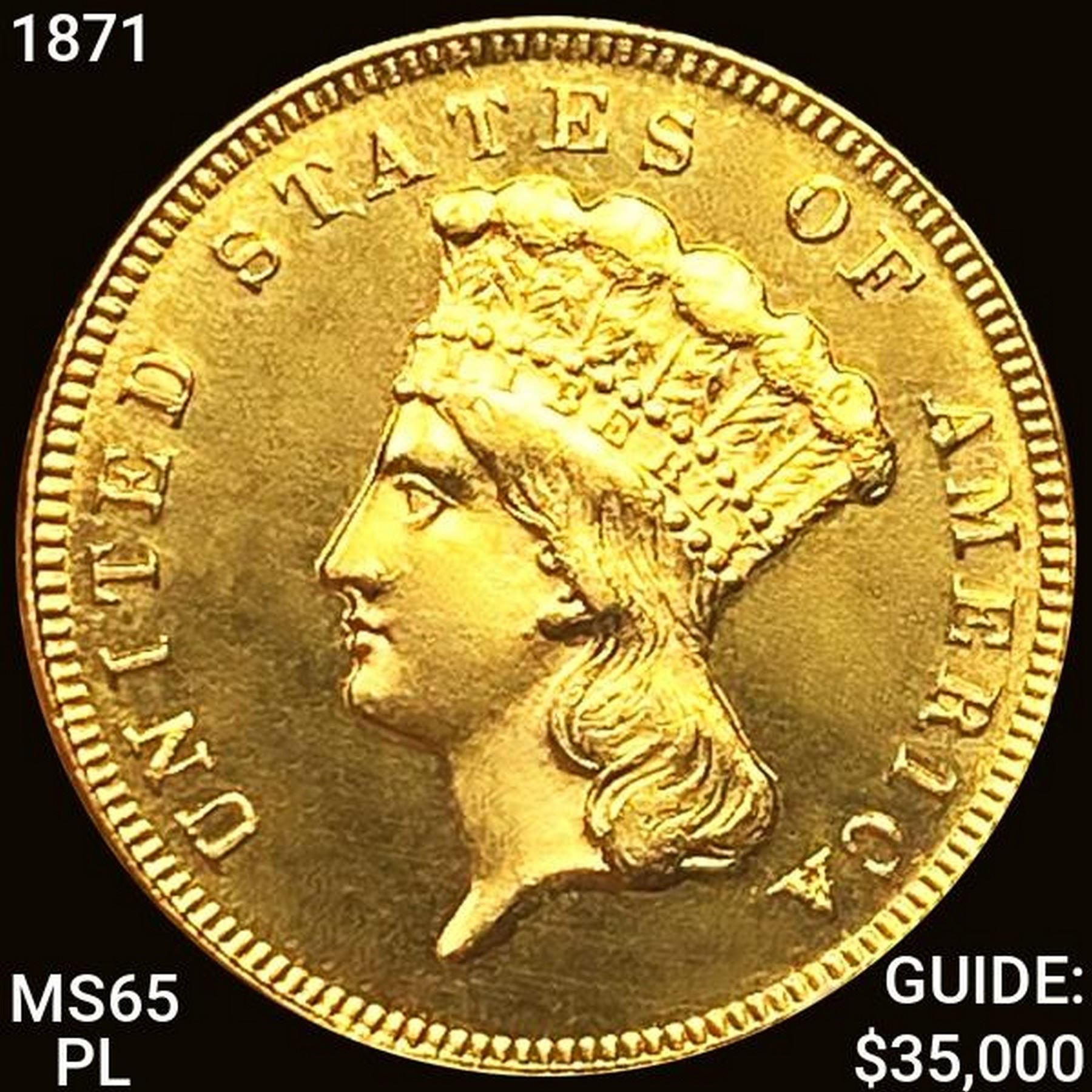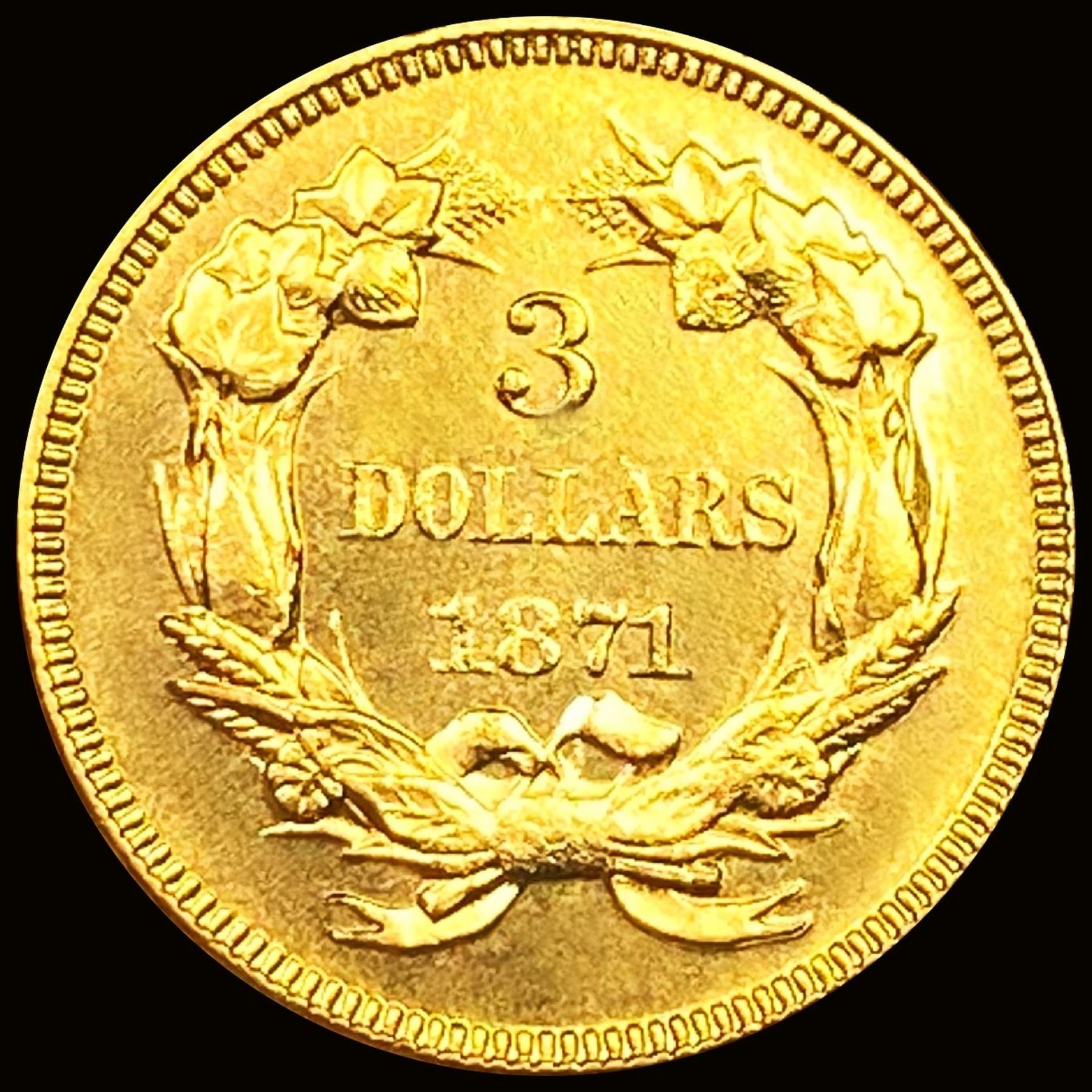 1871 $3 Gold Piece GEM BU PL