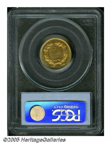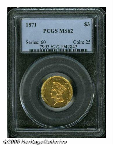 1871 $3 MS62 PCGS. With only 1,300 pieces busines