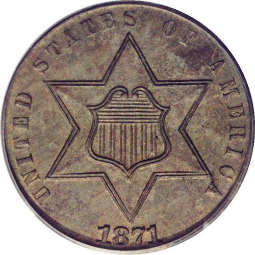 1871 3C Three Cent Silver, Judd-1047, Pollock-1181, Hi 1871[3C] Three Cent Silver, Judd-1047, Polloc