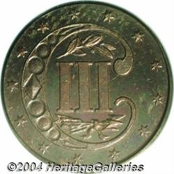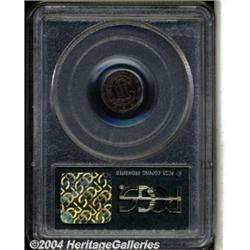 <B>1871<3C> Three Cent Silver, Judd-1047, Pollock-1181, R.7, PR63 Red and Brown PCGS.</B></I> Regular dies trial piece struck in copper with a plain edge. These patterns were probably produced as special pieces for sale to collectors at or near the time of issue. Similar patterns were also produced in nickel and aluminum. Intermingled mahogany, olive, and pale blue toning with reflective fields. <BR><BR><B>Important notice:</B> Heritage usually auctions material at the rate of 200-250 lots per hour. On some occasions eBay Live bid software or the Internet may not be able to keep up with the pace of the auction. We recommend placing a realistic absentee bid now as insurance to avoid disappointment. Occasionally the auctioneer may eliminate or reject an eBay Live bid, and the auctioneer may also reopen a lot after the close of the eBay live bidding (usually because we missed an audience bid), and may reject your bid even if it shows you as the winning bidder. By bidding via eBay Live, you agree that Heritage may award the lot to another bidder at its sole discretion under the circumstances described above or any other reasonable circumstances. Since eBay bids are not shown to us until we open the lot on the floor, we treat those bids just like floor bids. In most cases the floor responds before the eBay bid is presented to us, due to Internet lag time, so for consistency we have made it a policy that floor bids are always considered first over tie eBay live bids. Also please note that all Heritage lots purchased through eBay Live carry a 20% Buyer's Premium. Please make sure you read the Terms and Conditions before you bid. </span></font></tr></table></td></tr></table>