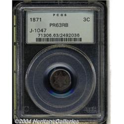 1871[3C] Three Cent Silver, Judd-1047, Pollock-1181, R.7, PR63 Red and Brown PCGS.