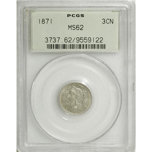 1871 3CN MS62 PCGS. PCGS Population (15/146). NGC
